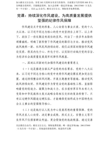 【七哥公文】2025年:【七哥公文】X课:持续深化作风建设,为高质量发展提供坚强的纪律作风保障+更多免费公文+VX:QiGeGongWen2024+更多免费公文+VX:QiGeGongWen2024