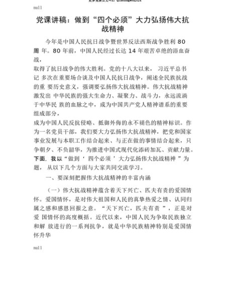 【七哥公文】2025年:【七哥公文】X课讲稿:做到“四个必须” 大力弘扬伟大抗战精神+更多免费公文+VX:QiGeGongWen2024+更多免费公文+VX:QiGeGongWen2024