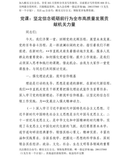 【七哥公文】2025年:【七哥公文】X课:坚定信念 砥砺前行 为全市高质量发展贡献机关力量+更多免费公文+VX:QiGeGongWen2024+更多免费公文+VX:QiGeGongWen2024