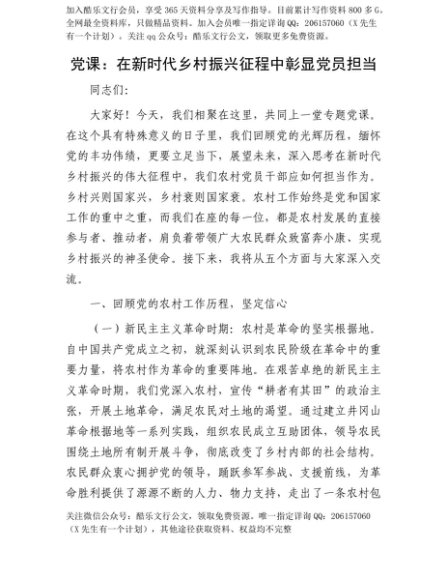 【七哥公文】2025年:【七哥公文】X课:在新时代乡村振兴征程中彰显X员担当+更多免费公文+VX:QiGeGongWen2024+更多免费公文+VX:QiGeGongWen2024
