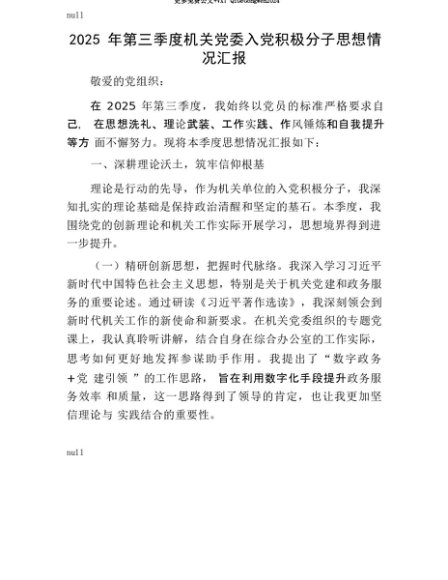 【七哥公文】2025年:【七哥公文】2025年第三季度机关X委入X积极分子思想情况汇报+更多免费公文+VX:QiGeGongWen2024+更多免费公文+VX:QiGeGongWen2024