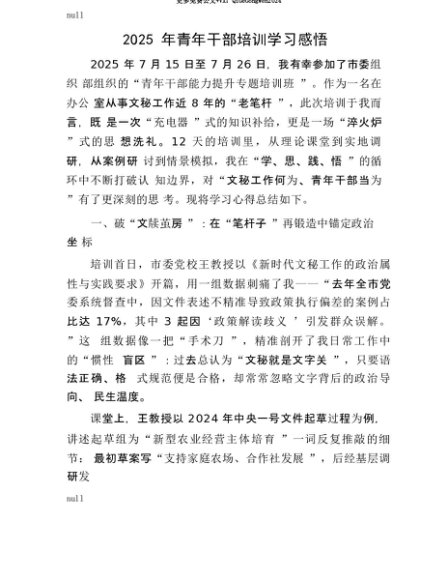 【七哥公文】2025年:【七哥公文】2025年青年干部培训学习感悟+更多免费公文+VX:QiGeGongWen2024+更多免费公文+VX:QiGeGongWen2024