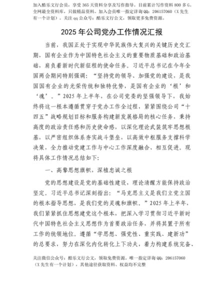 【七哥公文】2025年:【七哥公文】2025年公司X办工作情况汇报+更多免费公文+VX:QiGeGongWen2024+更多免费公文+VX:QiGeGongWen2024