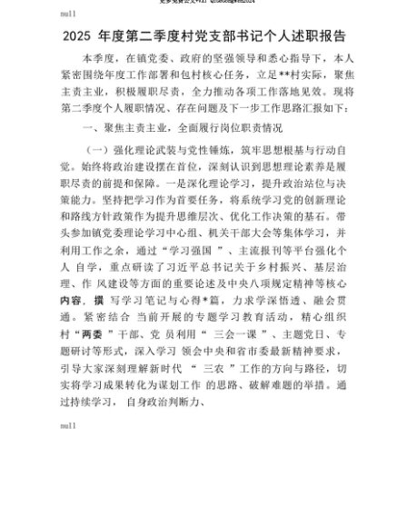 【七哥公文】2025年:【七哥公文】2025年度第二季度村X支部书记个人述职报告+更多免费公文+VX:QiGeGongWen2024+更多免费公文+VX:QiGeGongWen2024