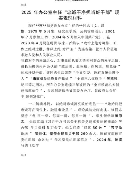 【七哥公文】2025年:【七哥公文】2025年办公室主任“忠诚干净担当好干部”现实表现材料+更多免费公文+VX:QiGeGongWen2024+更多免费公文+VX:QiGeGongWen2024