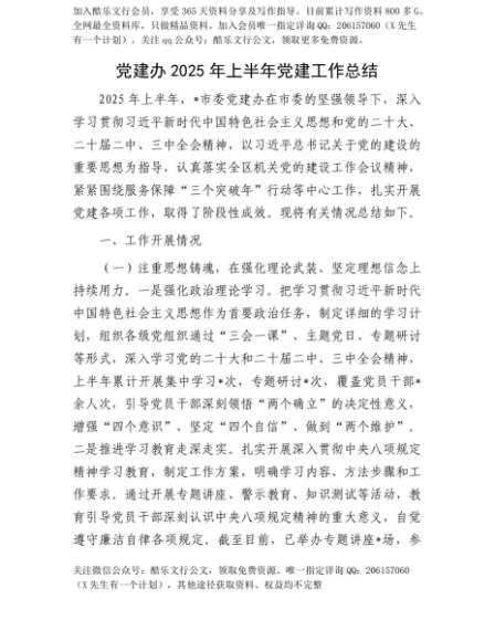 【七哥公文】2025年:【七哥公文】X建办2025年上半年X建工作总结+更多免费公文+VX:QiGeGongWen2024+更多免费公文+VX:QiGeGongWen2024