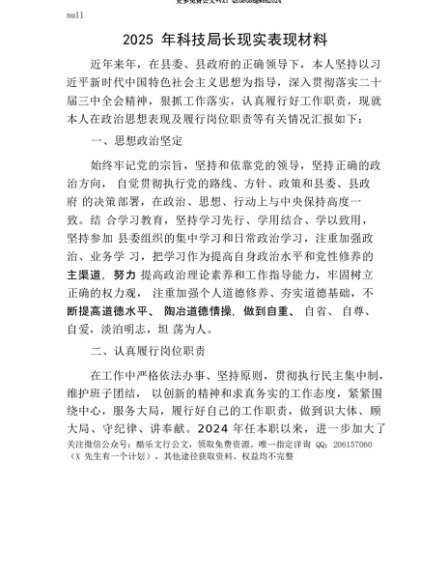 【七哥公文】2025年:【七哥公文】2025年科技局长现实表现材料+更多免费公文+VX:QiGeGongWen2024+更多免费公文+VX:QiGeGongWen2024