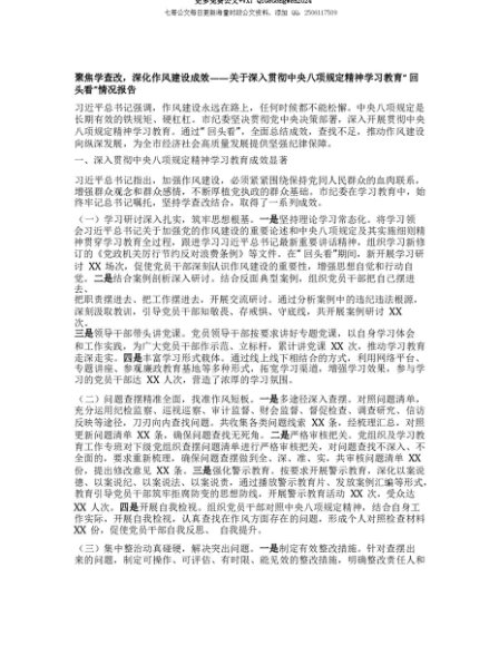 【七哥公文】2025年:【七哥公文】聚焦学查改,深化作风建设成效——关于深入贯彻中央BXGD精神学习教育“回头看”情况报告+更多免费公文+VX:QiGeGongWen2024+更多免费公文+VX:QiGeGongWen2024