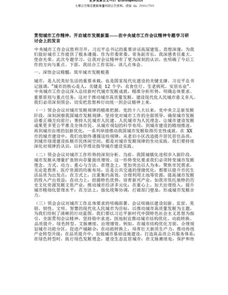 【七哥公文】2025年:【七哥公文】贯彻城市工作精神,开启城市发展新篇——在中央城市工作会议精神专题学习研讨会上的发言+更多免费公文+VX:QiGeGongWen2024+更多免费公文+VX:QiGeGongWen2024