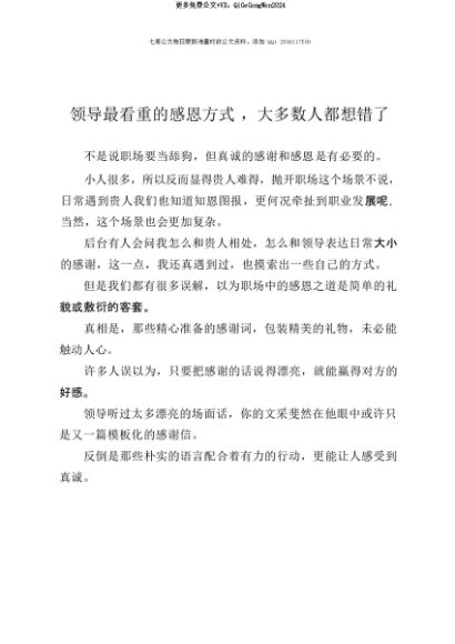 【七哥公文】2025年:【七哥公文】领导最看重的感恩方式,大多数人都想错了+更多免费公文+VX:QiGeGongWen2024+更多免费公文+VX:QiGeGongWen2024