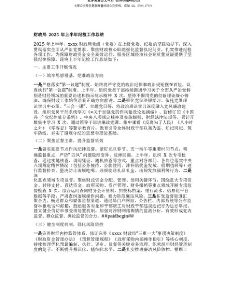 【七哥公文】2025年:【七哥公文】财政局2025年上半年纪检工作总结+更多免费公文+VX:QiGeGongWen2024+更多免费公文+VX:QiGeGongWen2024
