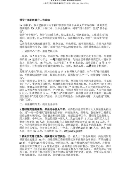 【七哥公文】2025年:【七哥公文】领导干部职级晋升工作总结+更多免费公文+VX:QiGeGongWen2024+更多免费公文+VX:QiGeGongWen2024