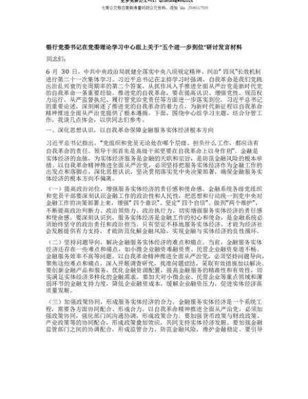 【七哥公文】2025年:【七哥公文】银行X委书记在X委理论学习中心组上关于“五个进一步到位”研讨发言材料+更多免费公文+VX:QiGeGongWen2024+更多免费公文+VX:QiGeGongWen2024