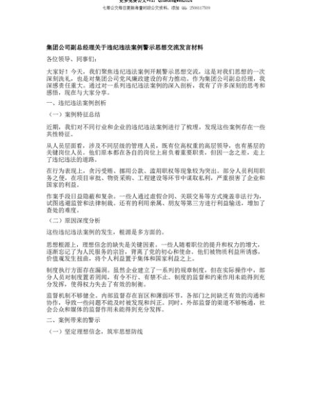 【七哥公文】2025年:【七哥公文】集团公司副总经理关于违纪违法案例警示思想交流发言材料+更多免费公文+VX:QiGeGongWen2024+更多免费公文+VX:QiGeGongWen2024