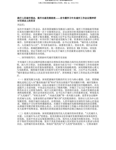 【七哥公文】2025年:【七哥公文】践行人民城市理念,提升内涵发展能效——在专题学习中央城市工作会议精神研讨交流会上的发言+更多免费公文+VX:QiGeGongWen2024+更多免费公文+VX:QiGeGongWen2024