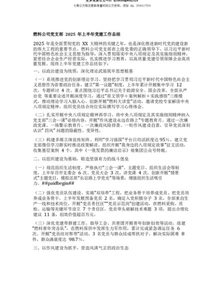 【七哥公文】2025年:【七哥公文】燃料公司X支部2025年上半年X建工作总结+更多免费公文+VX:QiGeGongWen2024+更多免费公文+VX:QiGeGongWen2024