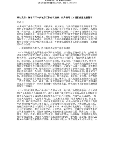 【七哥公文】2025年:【七哥公文】研讨发言:深学笃行中央城市工作会议精神,奋力谱写XX现代化建设新篇章+更多免费公文+VX:QiGeGongWen2024+更多免费公文+VX:QiGeGongWen2024