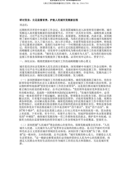 【七哥公文】2025年:【七哥公文】研讨发言:立足监督首责,护航人民城市发展新征程+更多免费公文+VX:QiGeGongWen2024+更多免费公文+VX:QiGeGongWen2024