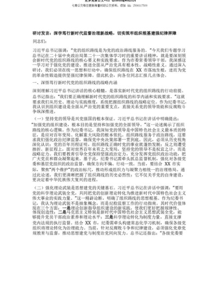 【七哥公文】2025年:【七哥公文】研讨发言:深学笃行新时代监督治理新战略,切实筑牢组织根基建强纪律屏障+更多免费公文+VX:QiGeGongWen2024+更多免费公文+VX:QiGeGongWen2024
