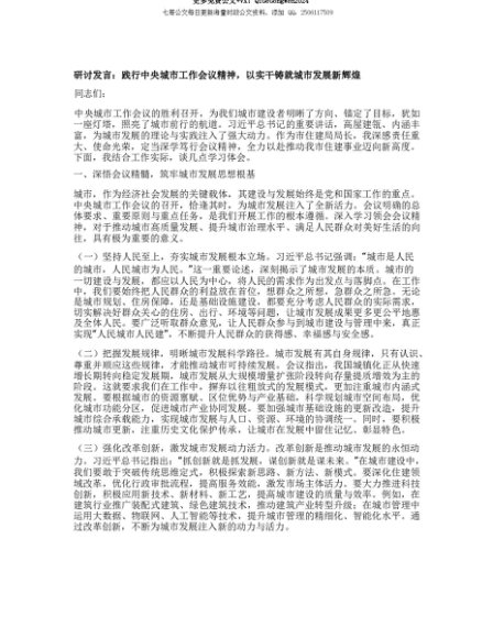 【七哥公文】2025年:【七哥公文】研讨发言:践行中央城市工作会议精神,以实干铸就城市发展新辉煌+更多免费公文+VX:QiGeGongWen2024+更多免费公文+VX:QiGeGongWen2024
