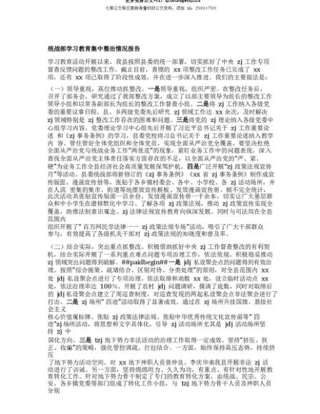 【七哥公文】2025年:【七哥公文】统战部学习教育集中整治情况报告+更多免费公文+VX:QiGeGongWen2024+更多免费公文+VX:QiGeGongWen2024