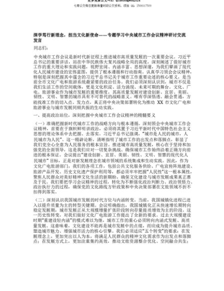 【七哥公文】2025年:【七哥公文】深学笃行新理念,担当文化新使命——专题学习中央城市工作会议精神研讨交流发言+更多免费公文+VX:QiGeGongWen2024+更多免费公文+VX:QiGeGongWen2024