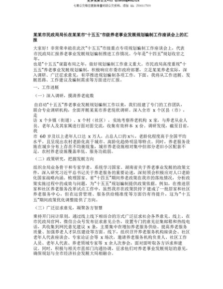 【七哥公文】2025年:【七哥公文】某某市民政局局长在某某市“十五五”市级养老事业发展规划编制工作座谈会上的汇报+更多免费公文+VX:QiGeGongWen2024+更多免费公文+VX:QiGeGongWen2024