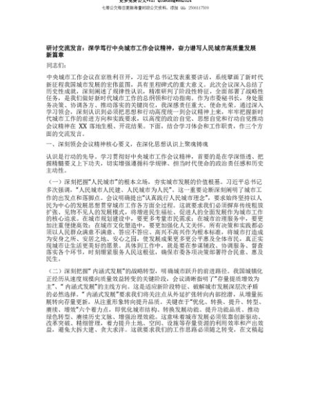 【七哥公文】2025年:【七哥公文】研讨交流发言:深学笃行中央城市工作会议精神,奋力谱写人民城市高质量发展新篇章+更多免费公文+VX:QiGeGongWen2024+更多免费公文+VX:QiGeGongWen2024