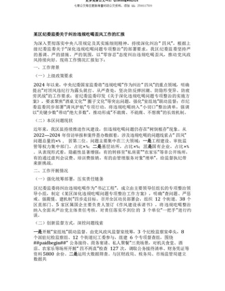 【七哥公文】2025年:【七哥公文】某区纪委监委关于纠治违规吃喝歪风工作的汇报+更多免费公文+VX:QiGeGongWen2024+更多免费公文+VX:QiGeGongWen2024