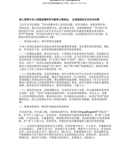 【七哥公文】2025年:【七哥公文】深入贯彻中央BXGD精神学习教育心得体会:自觉强X性正作风守纪律+更多免费公文+VX:QiGeGongWen2024+更多免费公文+VX:QiGeGongWen2024
