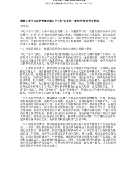 【七哥公文】2025年:【七哥公文】教育工委书记在X委理论学习中心组“五个进一步到位”研讨发言材料+更多免费公文+VX:QiGeGongWen2024+更多免费公文+VX:QiGeGongWen2024