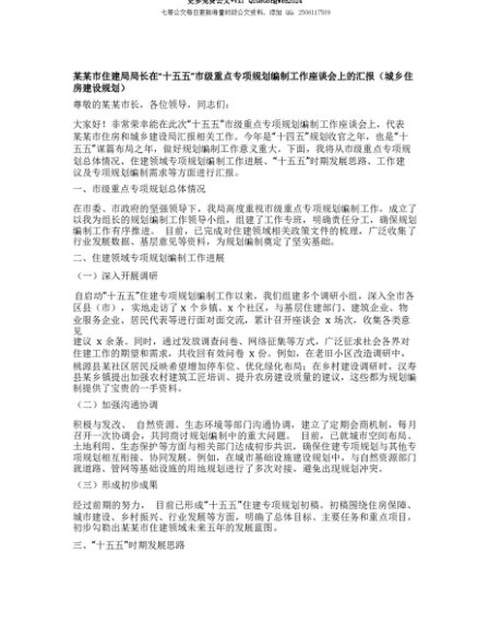 【七哥公文】2025年:【七哥公文】某某市住建局局长在“十五五”市级重点专项规划编制工作座谈会上的汇报(城乡住房建设规划)+更多免费公文+VX:QiGeGongWen2024+更多免费公文+VX:QiGeGongWen2024