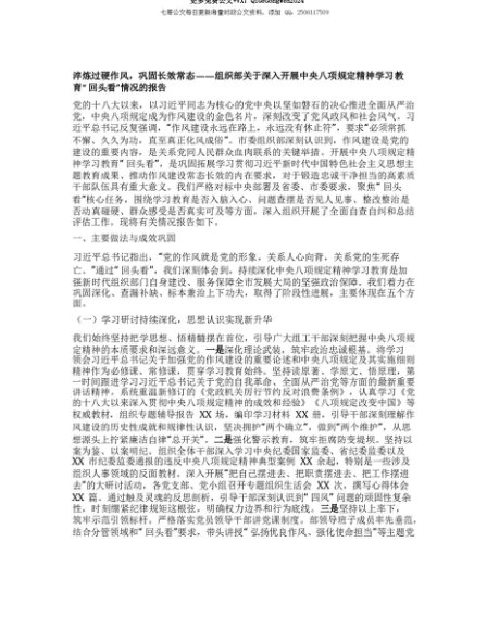 【七哥公文】2025年:【七哥公文】淬炼过硬作风,巩固长效常态——组织部关于深入开展中央BXGD精神学习教育“回头看”情况的报告+更多免费公文+VX:QiGeGongWen2024+更多免费公文+VX:QiGeGongWen2024