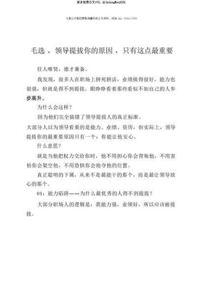 【七哥公文】2025年:【七哥公文】毛选,领导提拔你的原因,只有这点最重要+更多免费公文+VX:QiGeGongWen2024+更多免费公文+VX:QiGeGongWen2024