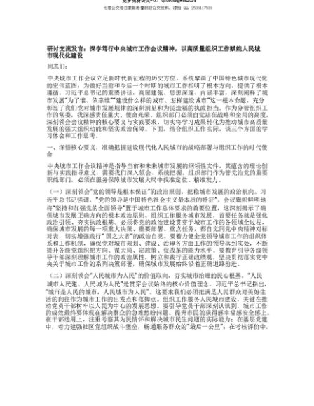 【七哥公文】2025年:【七哥公文】研讨交流发言:深学笃行中央城市工作会议精神,以高质量组织工作赋能人民城市现代化建设+更多免费公文+VX:QiGeGongWen2024+更多免费公文+VX:QiGeGongWen2024