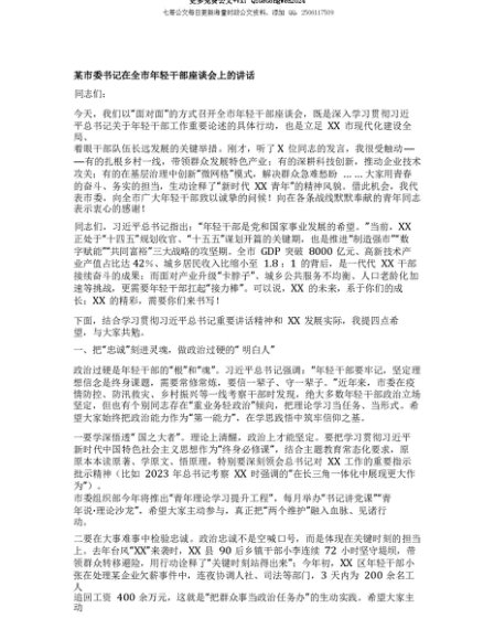 【七哥公文】2025年:【七哥公文】某市委书记在全市年轻干部座谈会上的讲话+更多免费公文+VX:QiGeGongWen2024+更多免费公文+VX:QiGeGongWen2024