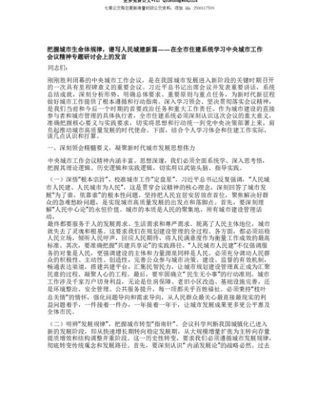 【七哥公文】2025年:【七哥公文】把握城市生命体规律,谱写人民城建新篇——在全市住建系统学习中央城市工作会议精神专题研讨会上的发言+更多免费公文+VX:QiGeGongWen2024+更多免费公文+VX:QiGeGongWen2024