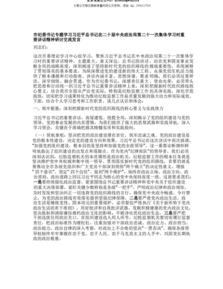 【七哥公文】2025年:【七哥公文】市纪委书记专题学习习近平总书记在二十届中央ZZ局第二十一次集体学习时重要讲话精神研讨交流发言+更多免费公文+VX:QiGeGongWen2024+更多免费公文+VX:QiGeGongWen2024