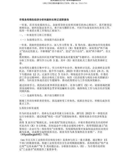 【七哥公文】2025年:【七哥公文】市税务局税收经济分析科副科长转正述职报告+更多免费公文+VX:QiGeGongWen2024+更多免费公文+VX:QiGeGongWen2024