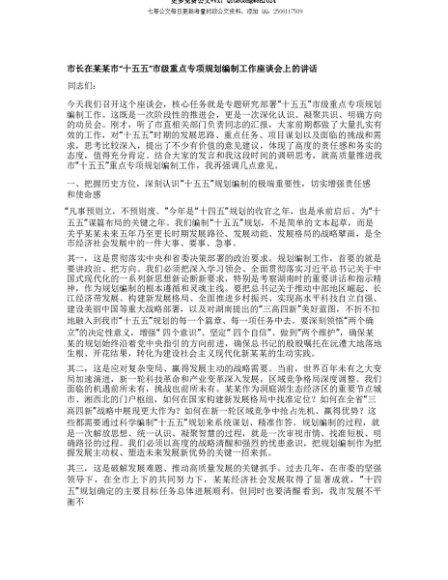 【七哥公文】2025年:【七哥公文】市长在某某市“十五五”市级重点专项规划编制工作座谈会上的讲话+更多免费公文+VX:QiGeGongWen2024+更多免费公文+VX:QiGeGongWen2024