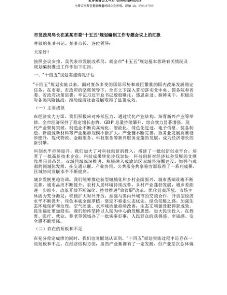 【七哥公文】2025年:【七哥公文】市发改局局长在某某市委“十五五”规划编制工作专题会议上的汇报+更多免费公文+VX:QiGeGongWen2024+更多免费公文+VX:QiGeGongWen2024