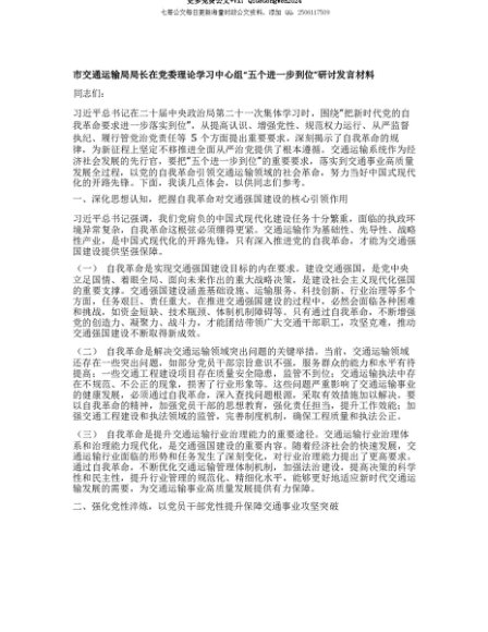 【七哥公文】2025年:【七哥公文】市交通运输局局长在X委理论学习中心组“五个进一步到位”研讨发言材料+更多免费公文+VX:QiGeGongWen2024+更多免费公文+VX:QiGeGongWen2024