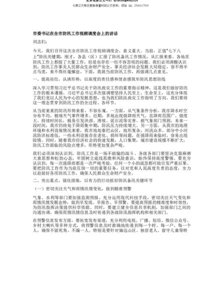 【七哥公文】2025年:【七哥公文】市委书记在全市防汛工作视频调度会上的讲话+更多免费公文+VX:QiGeGongWen2024+更多免费公文+VX:QiGeGongWen2024