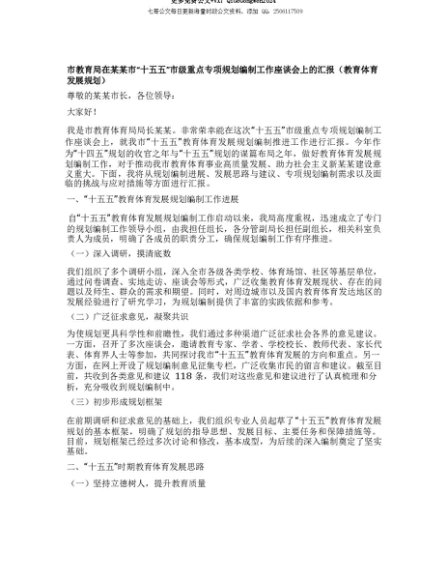 【七哥公文】2025年:【七哥公文】市教育局在某某市“十五五”市级重点专项规划编制工作座谈会上的汇报(教育体育发展规划)+更多免费公文+VX:QiGeGongWen2024+更多免费公文+VX:QiGeGongWen2024