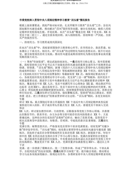 【七哥公文】2025年:【七哥公文】市委X校深入贯彻中央BXGD精神学习教育“回头看”情况报告+更多免费公文+VX:QiGeGongWen2024+更多免费公文+VX:QiGeGongWen2024