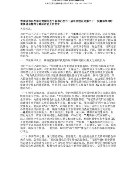 【七哥公文】2025年:【七哥公文】市委秘书长在学习贯彻习近平总书记在二十届中央ZZ局第二十一次集体学习时重要讲话精神专题研讨会上的发言+更多免费公文+VX:QiGeGongWen2024+更多免费公文+VX:QiGeGongWen2024