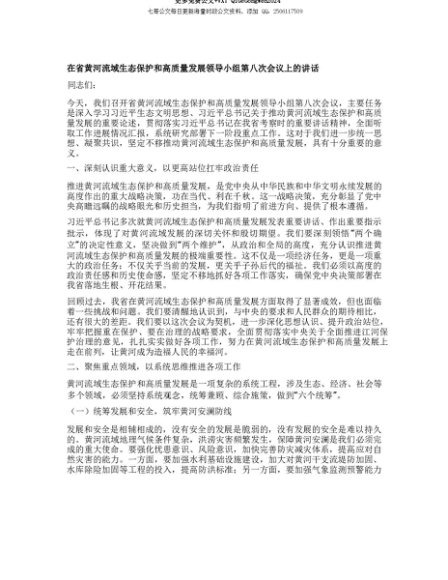 【七哥公文】2025年:【七哥公文】在省黄河流域生态保护和高质量发展领导小组第八次会议上的讲话+更多免费公文+VX:QiGeGongWen2024+更多免费公文+VX:QiGeGongWen2024