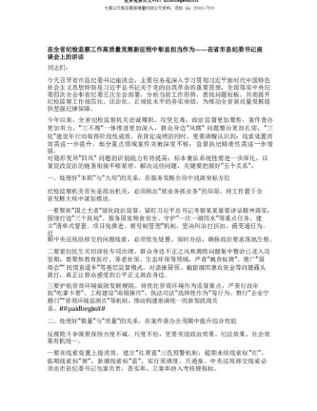 【七哥公文】2025年:【七哥公文】在全省纪检监察工作高质量发展新征程中彰显担当作为 ——在省市县纪委书记座谈会上的讲话+更多免费公文+VX:QiGeGongWen2024+更多免费公文+VX:QiGeGongWen2024
