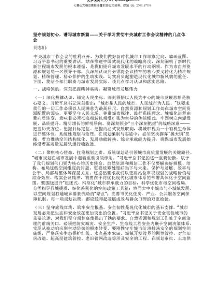 【七哥公文】2025年:【七哥公文】坚守规划初心,谱写城市新篇——关于学习贯彻中央城市工作会议精神的几点体会+更多免费公文+VX:QiGeGongWen2024+更多免费公文+VX:QiGeGongWen2024