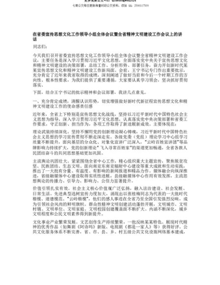 【七哥公文】2025年:【七哥公文】在省委宣传思想文化工作领导小组全体会议暨全省精神文明建设工作会议上的讲话+更多免费公文+VX:QiGeGongWen2024+更多免费公文+VX:QiGeGongWen2024